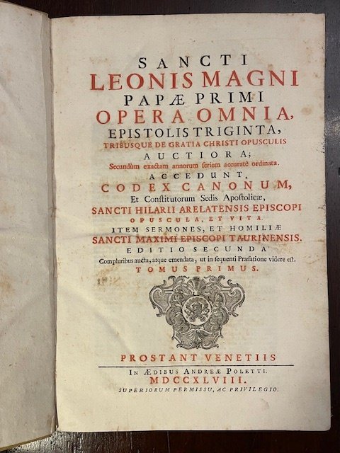 Sancti Leonis Magni Papae Primi Opera omnia, Epistolis triginta, tribusque de gratia Christi opuscolis auctiora; Accedunt, Codex Canonum, Et Constirutorum Sedis Apostolicae, Sancti Hilarii Arelatensis Episcopi opuscola, et vita. Item Sermones, et Homilia Sancti Maximi Episcopi Taurinensis. Editio secunda [.] Tomus primus (secundus)