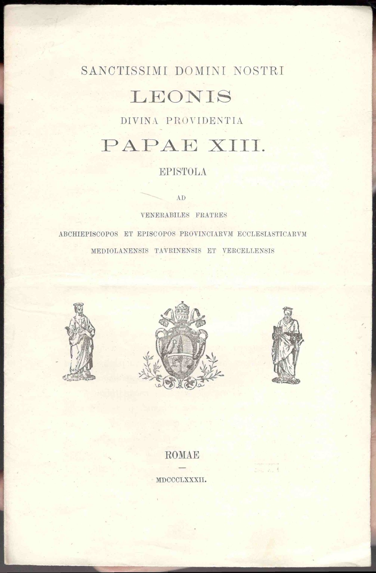 Sanctissimi domini nostri Leonis divina providentia Papae XIII. Epistola ad venerabiles fratres Archiepiscopos et Episcopos Provinciarum Ecclesiasticarum Mediolanensis, Taurinensis et Vercellensis