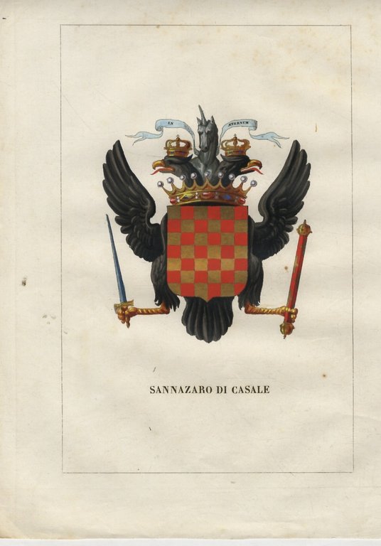 Lodi, Wilmant e figli, 1841-1848, in-4, privo di brossura, pp. [10]. Con un bello stemma accuratamente miniato a mano all'epoca, in vividi colori, con particolari dorati, su una tavola f.t. Fascicolo a fogli sciolti, dedicato alla storia della famiglia, tratto da "Teatro araldico, ovvero Raccolta generale delle armi ed insegne gentilizie delle più illustri e nobili casate che esisterono un tempo e che tuttora fioriscono in tutta Italia" di Leone Tettoni e F. Saladini, Lodi, Wilmant e figli, 1841-1848. mancanza al margine bianco superiore delle prime 3 carte di testo e della tavola.
