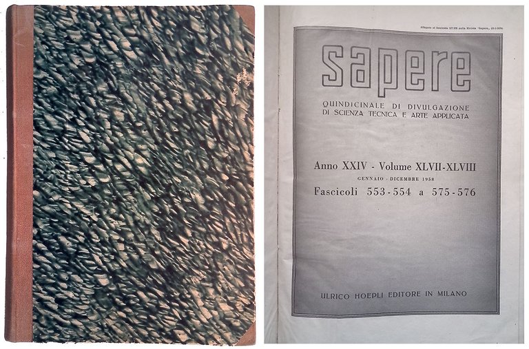 Dodici numeri rilegati in un unico volume, rilegatura coeva. Da fascicolo 553 a 576, f.to cm 33x25, copertina rigida. Buone condizioni, copertine originali presenti