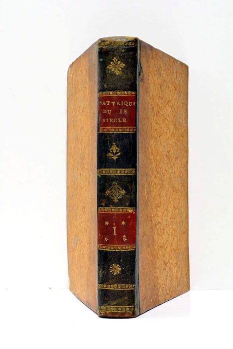 Tome I seul. 215 pages. 4 feuillets. (20x12,5cm) Demi-cuir. Dos ornée avec titre et tomaison en lettres dorées. Couverture et dos légèremnt frottés avec rt¡traces de mouillures et petites déchirures. Coins et coiffes émoussés. Cet ouvrage, publié à Paris vers la fin du XVIIIe siècle, rassemble des textes satiriques reflétant les tensions et les critiques de l'époque pré-révolutionnaire et révolutionnaire française. Dans une période marquée par d'importants bouleversements sociaux, politiques et culturels, ces écrits offrent un aperçu unique des courants de pensée et des débats qui animaient la société française. À travers ces pages, le lecteur moderne peut saisir l'esprit de contestation et de revendication qui a contribué à façonner les idéaux de liberté et d'égalité chers à la période révolutionnaire et qui continuent d'influencer la pensée contemporaine. Papier bruni avec petites taches et rousseurs éparses. Pages légèrement déformés. Tome I seul.