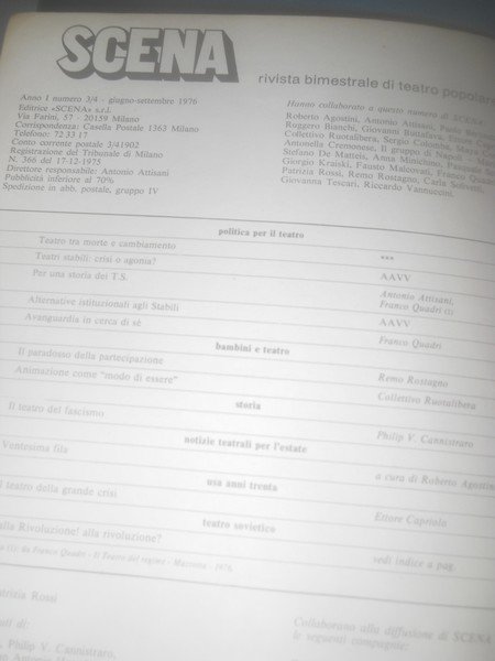 SCENA. rivista di teatro popolare anno I n. 3/4 1976 - numero doppio