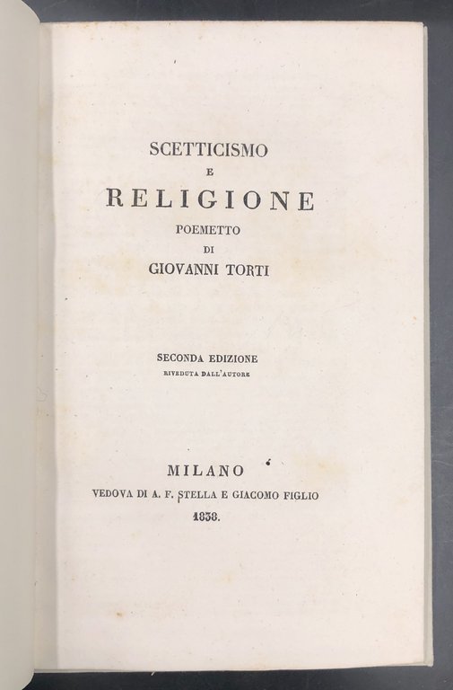 SCETTICISMO e RELIGIONE. Poemetto. Seconda edizione riveduta dall'autore.