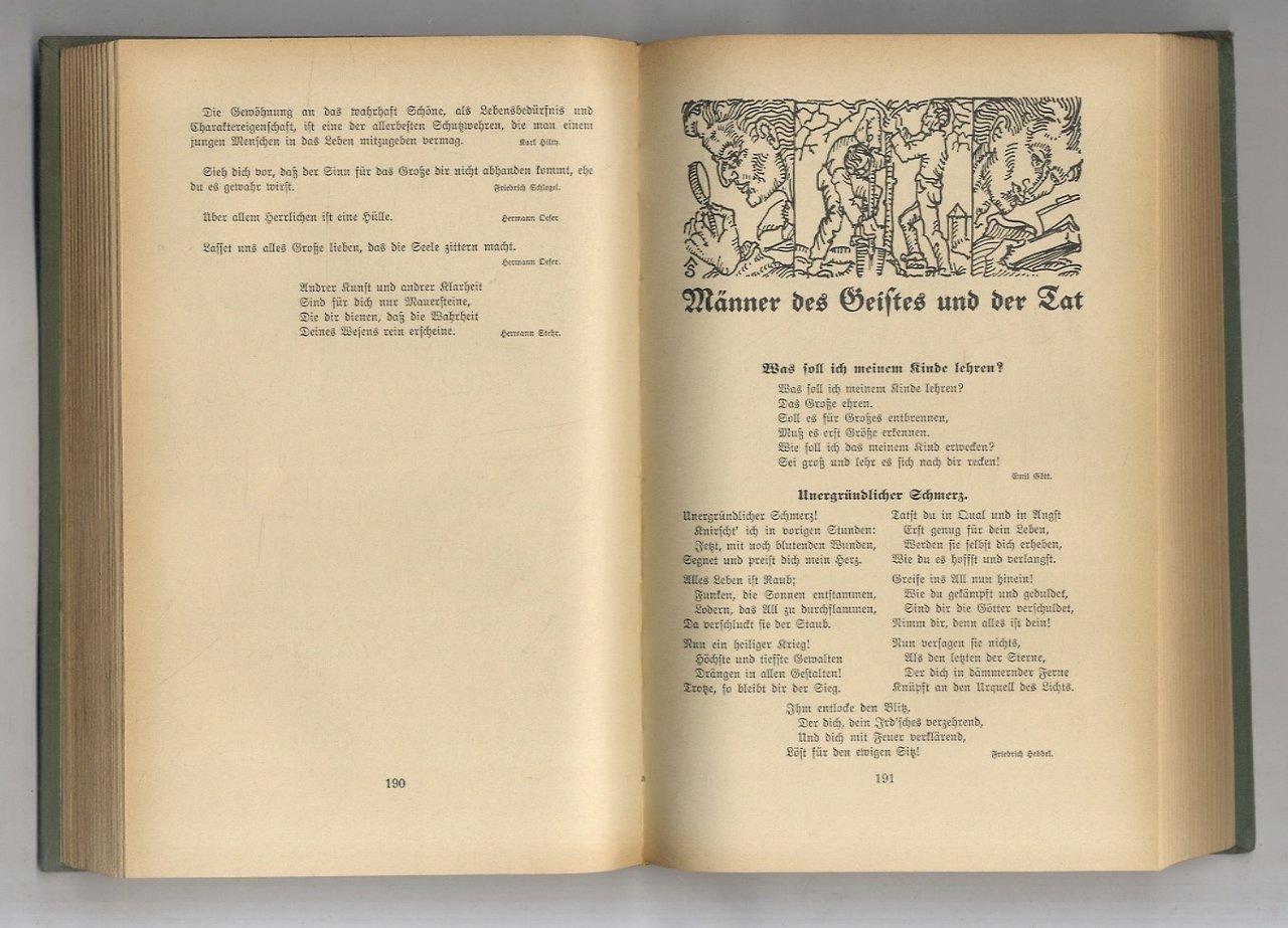 Freiburg im Breisgau, Herder & Co. Verlagsbuchhandlung, (1927), in-8, tela editoriale verde con titolo e leggiadra figurina in nero a silhouette al piatto anteriore, pp. XX, 461, (3). Con illustrazioni in b.n. di A.H. Starck, in foggia di testate. Ottime condizioni.