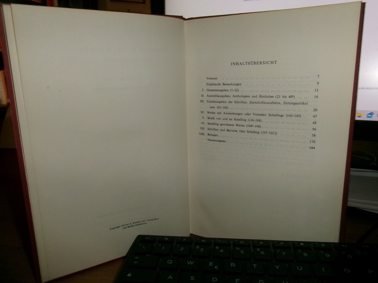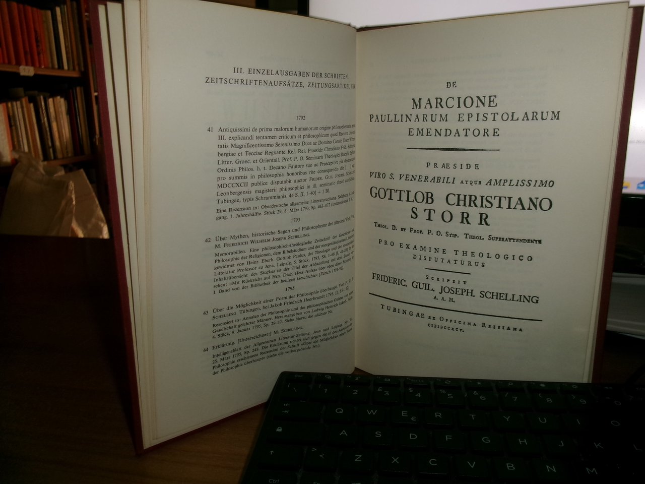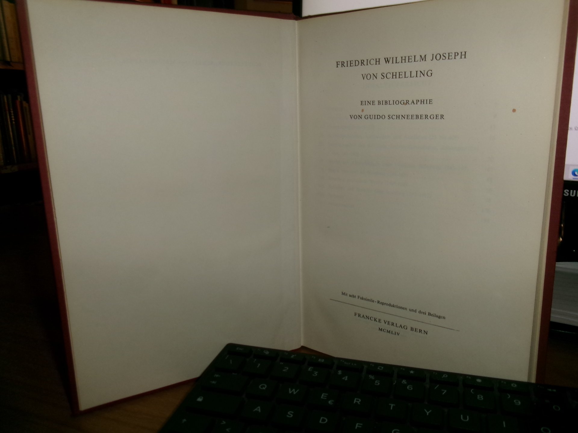 Friedrich Wilhelm Joseph von Schelling. Eine Bibliographie. In-8°, tela edit. bordeaux con titoli in oro. 190 pp. con alcune riproduzioni n.t. Ottimo stato con testo in tedesco. Uff. C - IV - 6