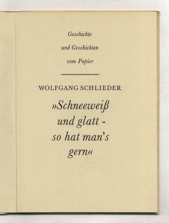 Schneerweiss und glatt - so hat man's gern. Geschichte und Geschichten vom Papier.(Neujahrsgabe der deutschen Bücherei 1981).