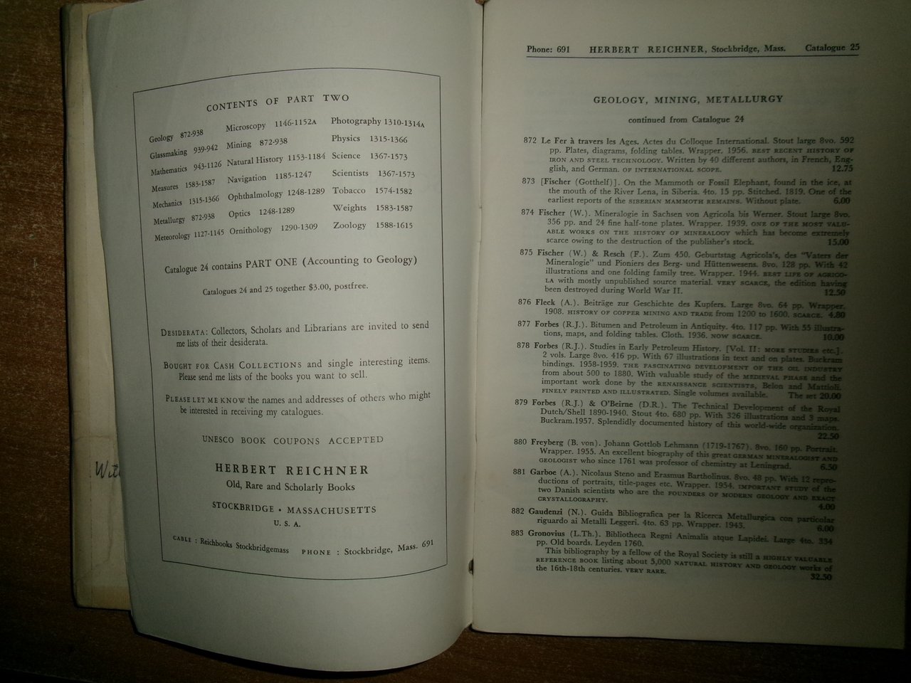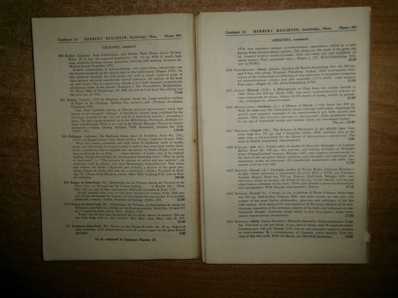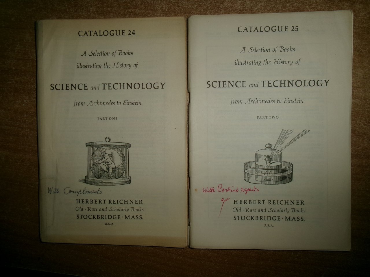 HERBERT REICHNER. U.S.A. Stockbridge. SCIENCE and Technology from Archimedes to Einstein catalogue 24/25. 2 cataloghi in-8°, br. part. one/Part two. Accurata descrizione di numerosi libri rari e antichi con prezzi in dollari. Ben conservati lievi segni d' uso, Neg. mob. E entro busta trasp.