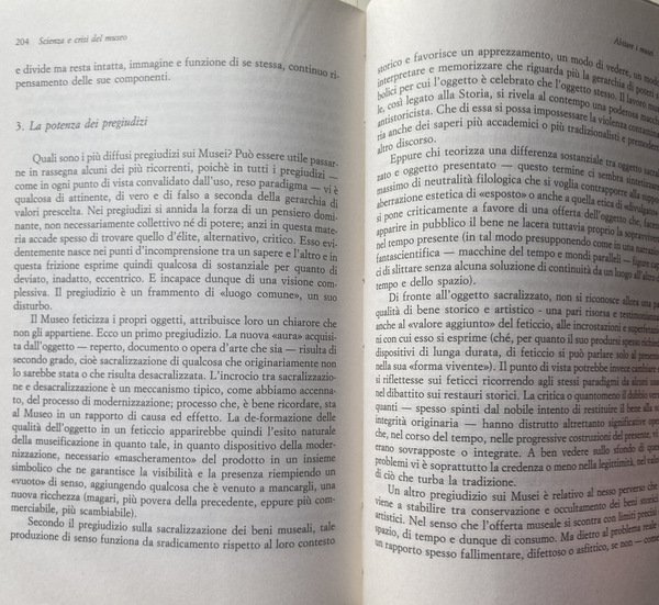 Lo scritto di Wilson (in una traduzione che chiama i servizi culturali del museo ufficio della cultura e le didascalie delle opere etichette) appare abbastanza a sorpresa, e utilmente, per il lettore italiano che è assuefatto, in questo ultimo decennio tra Beaubourg e Louvre, soprattutto a una museologia francofona. Nell'intenzione dei curatori doveva aprire un dibattito sulle nostre istituzioni. Ma niente di più incomunicabile del ritratto di una macchina museale ben collaudata come è il British Museum descritto da Wilson, messo a confronto con una serie di interventi "all'italiana", in cui ciascuno cerca di dire la parola definitiva sul museo. Il museo ideale e irraggiungibile nella disastrata situazione nostrana è il museo per la comunicazione, ultimo travestimento rimodernato di quello che era stato negli anni sessanta il museo per la società.