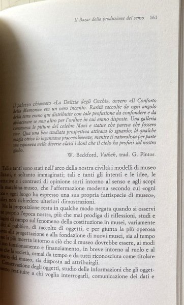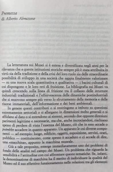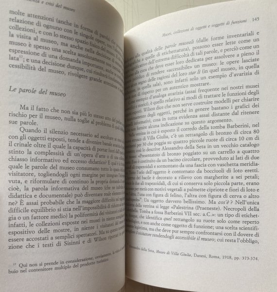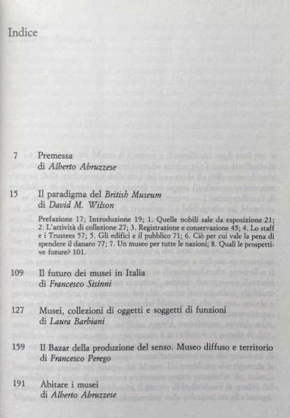 Soggetti: Arte, Musei, Museologia, Beni culturali, Libri universitari, Biblioteconomia, Sociologia, Processi Culturali, Innovazione Tecnologica, Management, Comunicazione, Media, Estetica, Collezioni, Cataloghi, Mostre, Eventi, Pubblico, Opere d'arte, Artisti, Tutela, Patrimonio culturale, Acquisizioni, Valore, Organizzazione, Scienze museali, Direttori, Inghilterra, Italia, Scienza, Crisi, Collezionismo, Vendita, Prezzi, Marketing, Guide, Turismo, Industria del museo, Contenuti, Gestione, Consumo di massa, Code, Visitatori, Successi, Sponsorizzazioni, Cambiamenti, Reti, Critica, Analisi, Tradizione, Borghesia, Ottocento, Novecento, Sale da esposizione, Registrazione, Conservazione, Oggetti, Funzioni, Produzione, Letteratura, Scavi, Reperti archeologici, Ricerca, Bibliografia, Riferimento, Macchina museale, Le Corbusier, Inventario, Educazione, Politica, Memoria storica, Percorsi, Modernità, Formazione, Editoria, Spettacolo, Città, Grand Tour, Edifici storici, Costi, Manutenzione, Esperienze, Imperialismo Occidentale, Centri storici, Illuminazione, Front Hall, Londra, Mecenatismo, Donazioni, Fondazioni, Sir Hans Sloane, Diderot, Regno Unito, Naturalismo, Antiquariato, Voltaire, Handel, Franklin, Durer, Pittori, Pittura, Dipinti, Quadri, Pinacoteca, Prestiti, Manoscritti, Disegni, Biblioteca, Collezione, Pezzi, Arte giapponese, Orientale, Cinese, Impero britannico, Egitto, Egiziana, Greca, Preistorica, Medievale, Medioevo, Indigeni, Antichità, Esposizioni, Stampe, Design, Architettura classica, Francia, Louvre, Uffizi, Firenze, Confronti, Stato, Finanziamenti, Staff, Privatizzazione, Risorse finanziarie, Raccolte, Benefattori, Collezionisti, Scavatori, Personale, Governo, Istituzioni, Acquisito, Permessi, Archeologia, Monete, Etnografia, Franks, Gallery, Sovvenzione, Greek, Hawkins, House, Custode, Bibliotecario, Marcia, Immateriale, Medaglie, Storia Naturale, Panizzi, Lettura, Sala Romana, Sculture, Tesoro, Trustees, Van Gogh, Ceto medio, Giovani, Scuole, A. Carandini, Consumatori, Presente, Wunderkammer, Vaticano, Roma, Venezia, Brera, Memorabilia, Federico II, Notorietà, Disaffezione, Cartoline, D'Annunzio, Vittoriale, Verona, Bazar, Museo diffuso, Emozioni, Seduzione, Identità, Spazio, Tempo, Hubert Danish, Stefano Poggi, Soprintendenza, Alessandra Mottola Molfino, Andrea Emiliani, Degrado, Arturo Carlo Quintavalle, Enzo Paci, Salvatore Veca, Pomian, Raffaello, Michelangelo Buonarroti, Leonardo da Vinci, Riqualifica, Budget, Sviluppo, Porte aperte, Libri rari Vintage fuori catalogo, Museums, Museology, Cultural Heritage, University Books, Librarianship, Sociology, Cultural Processes, Technological Innovation, Communication, Aesthetics, Collections, Catalogues, Exhibitions, Events, Public, Works, Artists, Protection, Cultural Heritage, Acquisitions, Value, Organization, Museum sciences, Directors, England, Italy, Science, Crisis, Collecting, Sale, Prices, Guides, Tourism, Museum industry, Contents, Management, Mass consumption, Queues, Visitors, Successes, Sponsorships, Changes, Networks , Criticism, Analysis, Tradition, Bourgeoisie, Nineteenth century, Twentieth century, Showrooms, Registration, Conservation, Objects, Functions, Production, Literature, Excavations, Archaeological finds, Research, Bibliography, Reference, Machine, Inventory, Education, Policy, Historical memory, Paths, Modernity, Education, Publishing, Entertainment, Cities, Historical buildings, Costs, Maintenance, Experiences, Western imperialism, Historical centres, Lighting, London, Patronage, Donations, Foundations, United Kingdom, Naturalism, Antiques, Painters, Paintings, Pictures, Loans, Manuscripts, Drawings, Library, Collection, Pieces, Japanese Art, Oriental, Chinese, British Empire, Egypt Egyptian, Greek, Prehistoric, Medieval, Middle Ages, Indigenous, Antiquities, Exhibitions, Prints, Classical architecture, France, Florence, Comparisons, State, Funding, Privatization, Financial resources, Benefactors, Collectors, Excavators, Government, Institutions, Acquired, Permits, Archaeology, Coins, Ethnography, Grant, Keeper, Librarian, Immaterial, Medals, Natural History, Reading, Roman Room, Sculptures, Treasury, Middle class, Youth, Schools, Consumers, Present, Vatican, Rome, Venice, Notoriety, Disaffection, Postcards, Widespread museum, Emotions, Seduction, Identity, Space, Time, Superintendency, Degradation, Redevelopment, Development, Open doors, Rare books out of print