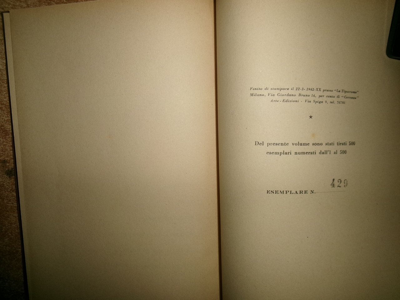 SCIPIONE Carte Segrete a cura di Enrico Falqui. Milano, Corrente Edizioni, 1942. In-8° piccolo, br. edit. X, 78, (5) pp. con ritratto in antiporta. Ottimo stato in tiratura limitata di 500 esemplari, esemplare n. 429. Neg. lett. mod. mob. H in busta trasp.