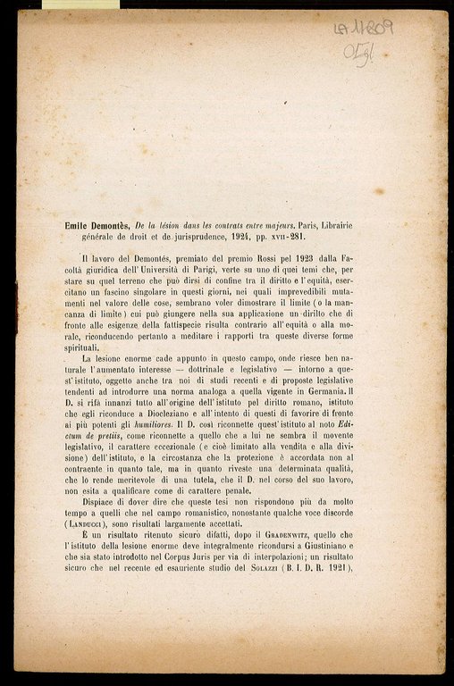 Opuscolo vintage, Vol. XCIV, Fasc. 1, Quarta Serie, vol. X, FAsc. 1). Copertina mancante, intonso. Segno del tempo.