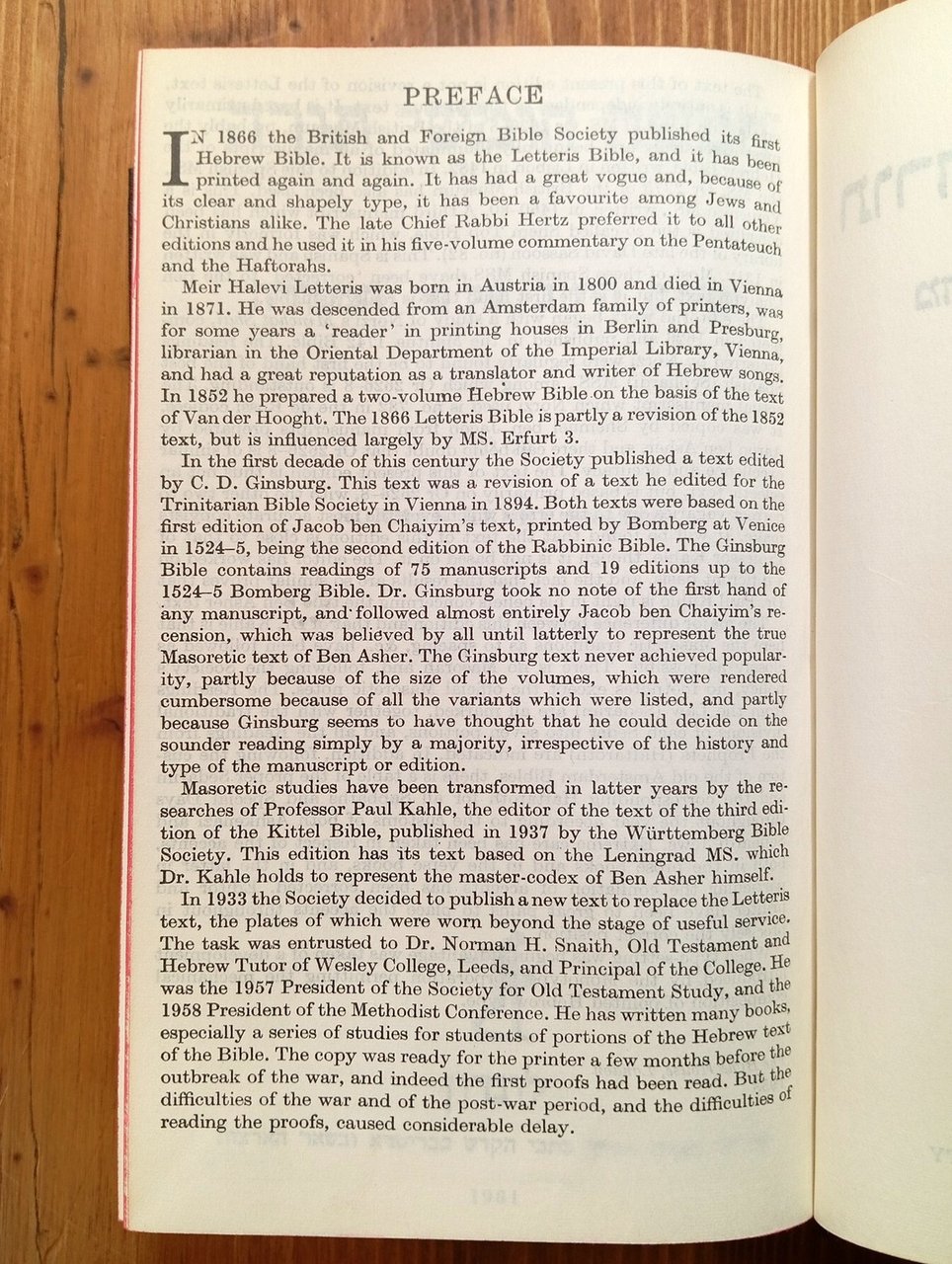 Volume rilegato in tela editoriale nera con titolo in oro al dorso, tagli dipinti in rosso, 1362 + 483 pagine; testo in lingua ebraica (Hebrew text), prefazione in inglese (English preface). Edizione a cura di Norman Henry Snaith. Copia in condizioni eccellenti, poco o nulla frequentata.