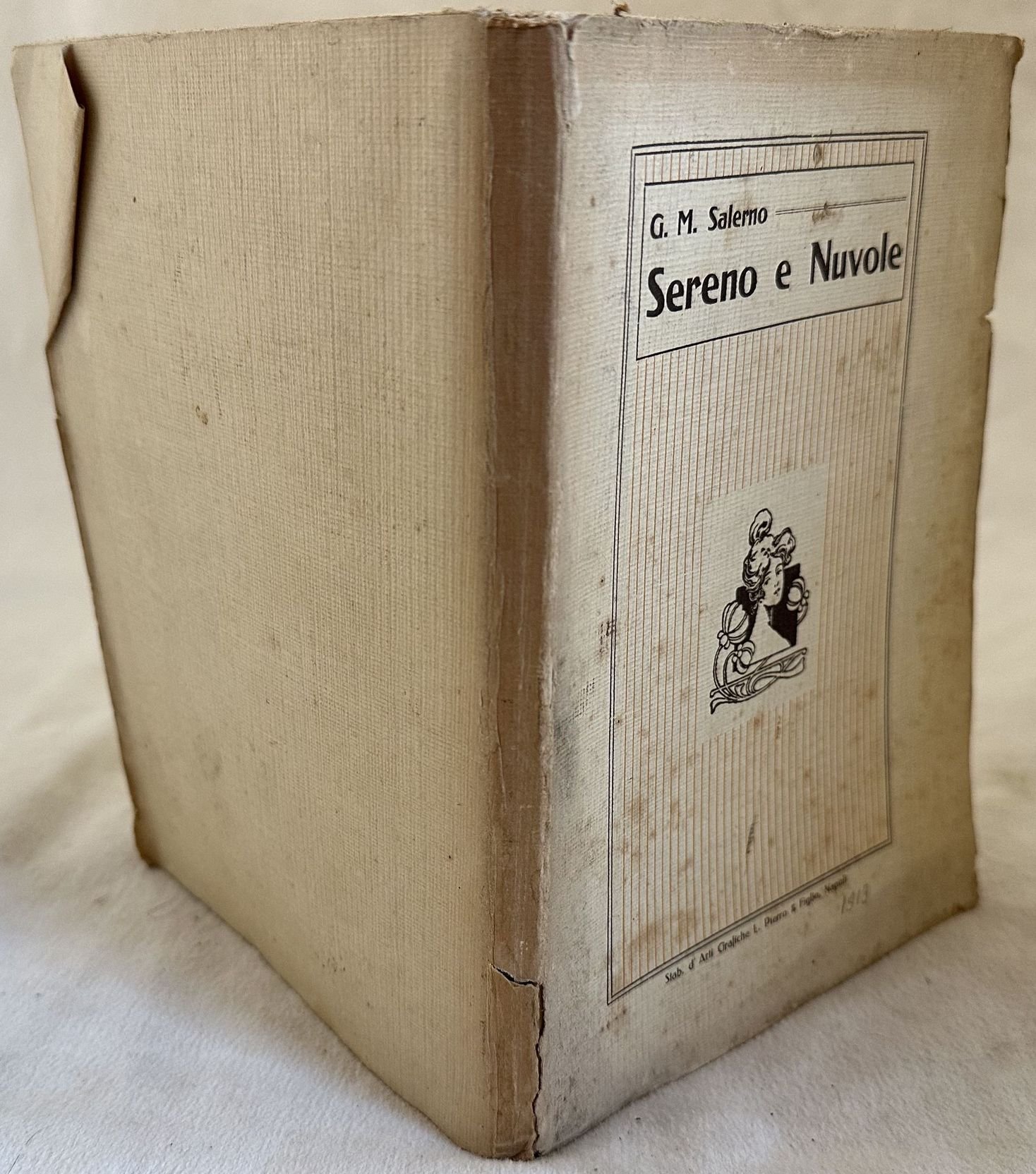 Edizione del 1913 di questo poema di G. M. Salerno. Tra le poesie: Ai Camaldoli di Napoli, Casteldelmonte. In discrete condizioni. Copertina editoriale in discrete condizioni con usure marginali. Legatura in discrete condizioni con rotture. Corpo del libro quasi del tutto staccato dalla legatura. Pagine in buone condizioni con fioriture. In 8. cm. 22x16,5. Pp. 125. Edition of 1913 of this poem by G. M. Salerno. Between the poems inside: Ai Camaldoli di Napoli, Casteldelmonte. In fair conditions. Editorial cover in fair conditions with worn edges. Binding in fair conditions with cracks. The body of the book detached from the binding. Pages in good conditions with foxing.In 8. cm. 22x16,5. Pp. 125.<BR><BR>