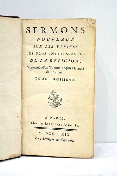 SERMONS nouveaux sur les vérités les plus intéressantes de la Réligion. Augmentés d'un volume acquis à la mort de l'auteur. Tome troisième.