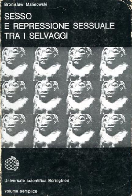 Ristampa. 286 p. ; 19 x 13 cm. Universale scientifica Boringhieri. Sesso e repressione sessuale tra i selvaggi – Pubblicata nel 1927 quando Malinowski era ormai un’autorità indiscussa, quest’opera ha inaugurato il dialogo tra antropologia e psicoanalisi che si è protratto sino ai giorni nostri. Un dialogo e una polemica: al centro di questo studio, frutto delle ricerche sul terreno presso i popoli delle isole Trobriand, si trova l’indagine sugli usi e miti degli indigeni compiuta allo scopo di mettere alla prova le dottrine freudiane e, in particolare, la pretesa universalità del complesso edipico. Pur non negando gli assunti fondamentali della teoria psicoanalitica, Malinowski giunge però alla conclusione che in una società extraeuropea e matrilineare, come quella da lui osservata e studiata, il complesso di Edipo non possa svilupparsi. Sarà l’inizio di un dibattito accesissimo tra opposte fazioni. Caposaldo degli studi antropologici, Sesso e repressione tra i selvaggi, al pari dei grandi classici, continua ad affascinare per l’ambientazione esotica e rimane un modello esemplare di confronto interdisciplinare. Introduzione e traduzione di Tullio Tentori. Titolo originale dell'opera: «Sex and Repression in Savage Society». Brossura editoriale, coperta illustrata (b/n) in copertina flessibile plastificata opaca. Qualche segno del tempo alla coperta e ai profili per il resto libro in buono stato. Codice libreria 4153.