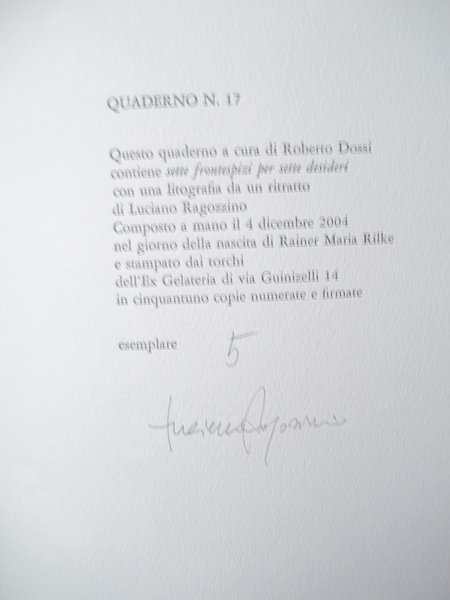 I QUADERNI DI ORFEO N.17 - 2004 COPERTINA FLESSIBILE 27 X 20 - TIRATURA IN 51 COPIE FIRMATE E NUMERATE ESEMPLARE 5 -COME NUOVO.