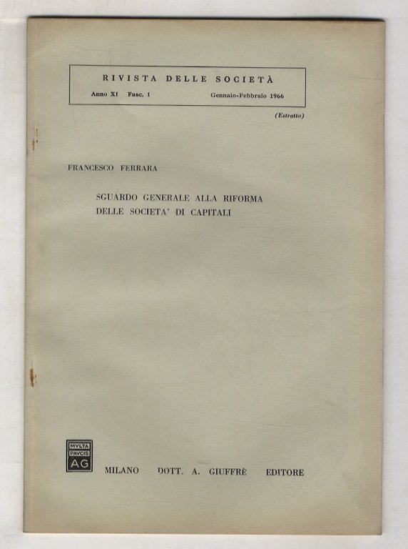 Sguardo generale alla riforma delle società di capitali.