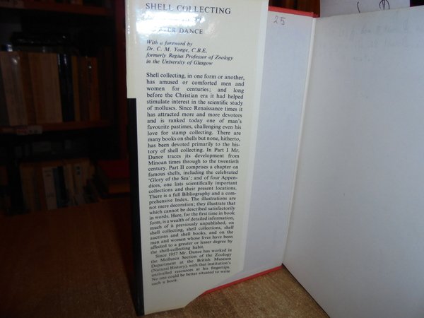 S. PETER DANCE. London, Faber and Faber, 1966. SHELL COLLECTING. An Illustrated History. In-8° piccolo, tela con titolo in oro al dorso e sovracopertina. 343, (1) pp. con illustrazioni nel testo, XXXV tavole anche a colori fuori testo. In ottimo stato di conservazione o come nuovo. Neg. Nat. mob. 0
