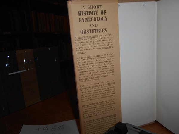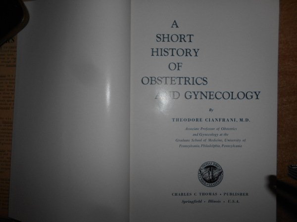 THEODORE CIANFRANI. Springfield - Illinois, Charles C Thomas, 1960. Short HISTORY OF OBSTETRICS and GYNECOLOGY. In-8°, tela edit. con titolo in oro al dorso e sovracopertina. xvi, 449 pp. con numerose illustrazioni nel testo. Ottimo esemplare. Uff. C - IV - 4