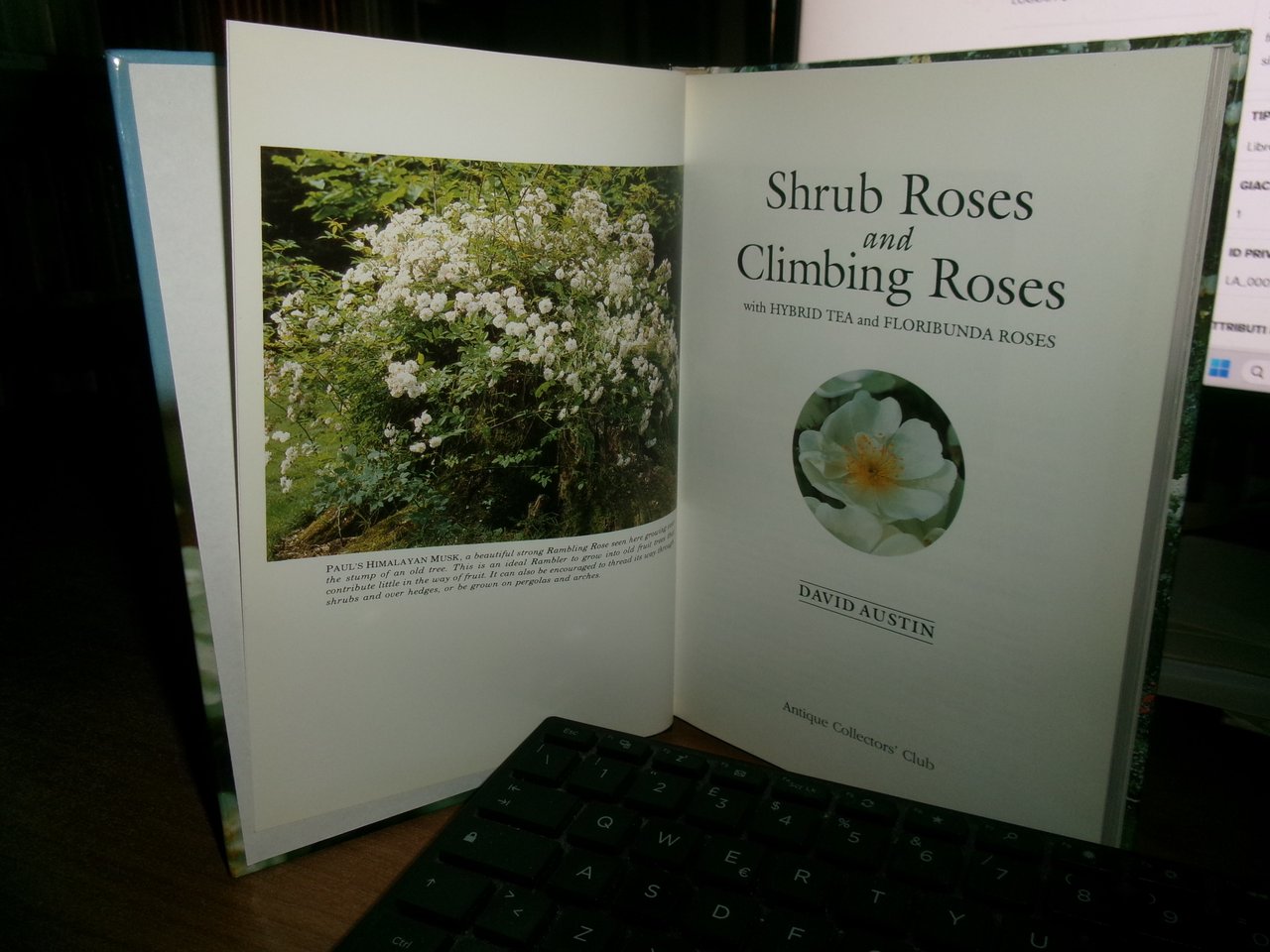 DAVID AUSTIN. England, by Antique Collectors' Club, 1993. Shrub ROSES and Climbing Roses. In-8°, cartonato edit. ill. a col. 288 pp. con numerose illustrazioni fotografiche a colori nel testo. Ottimo stato con testo in inglese. Neg. mob. 22