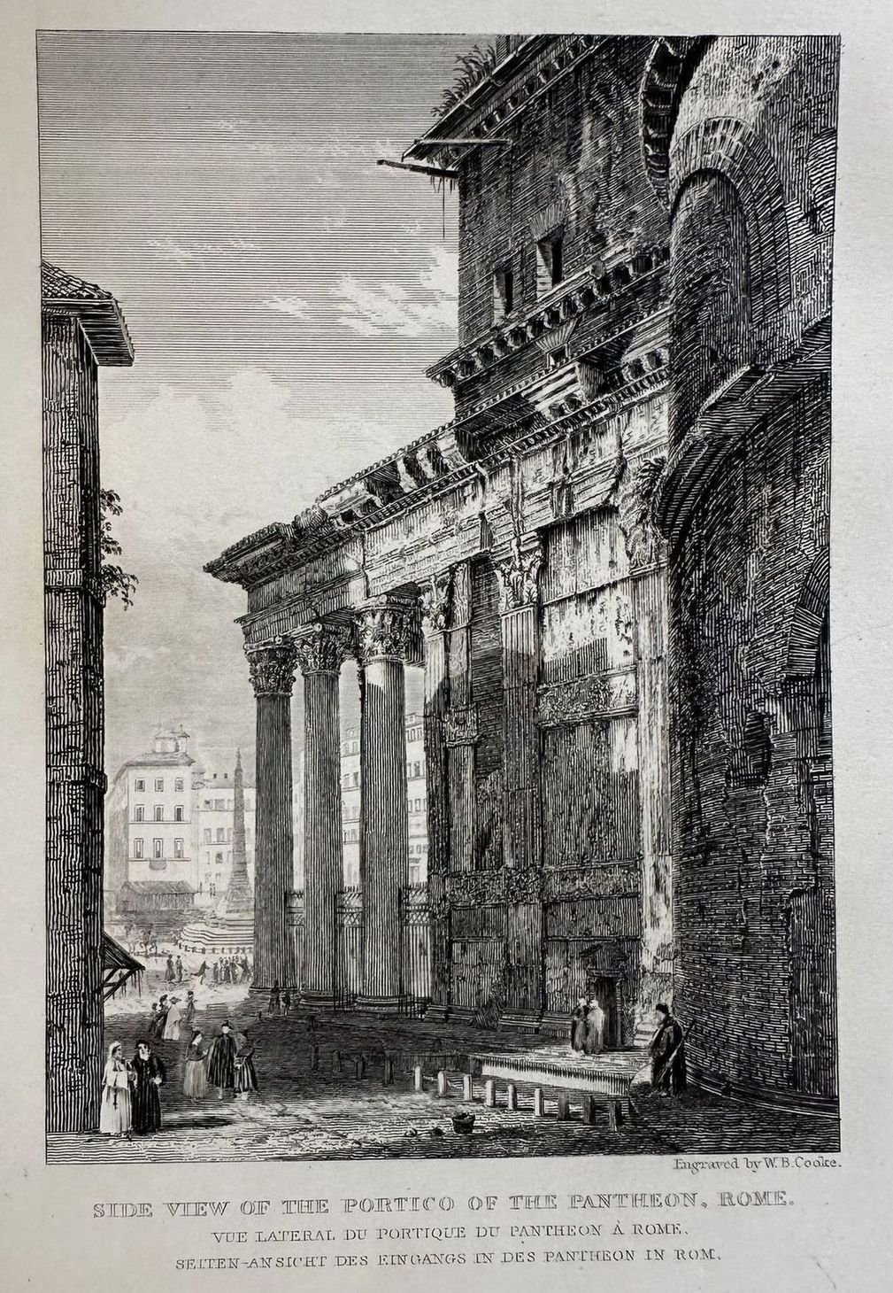 Veduta laterale del Portico del Pantheon a Roma. Atlante: Rome and its surrounding scenery Autore: W. B. Cooke Data: 1840 circa Tecnica: Litografia Dimensione del foglio: 27,5x20,5 cm Dimensione incisione: 18x13 cm Condizioni: Buone. Alcune fioritureSide view of the Portico of Pantheon in Rome. Atlas: Rome and its surrounding scenery Author: W. B: Cooke Date: 1840 circa Technique: Lithography Leaf Dimension:27,5x20,5 cm Engraving Dimension: 18x13 cm Conditions: Good conditions. Some foxing.