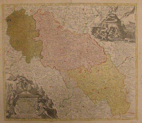 Silesiae Ducatus tam Superior quam Inferior juxta suos XVII Minores Principatus et VI liber dominia distermiat nova mappa geographica ob oculos positus.