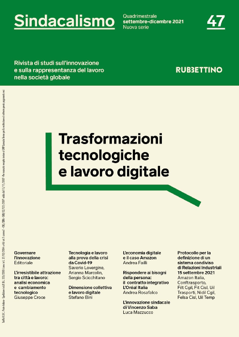 Sindacalismo. Rivista di studi sull'innovazione e sulla rappresentanza del lavoro nella società globale. Vol. 47: Trasformazioni tecnologiche e lavoro digitale | Libri antichi e moderni |