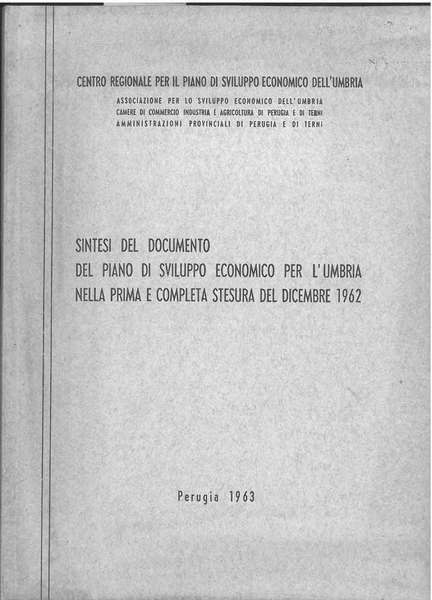 Sintesi del documento del piano di sviluppo economico per l'Umbria nella prima e completa stesura del dicembre 1962