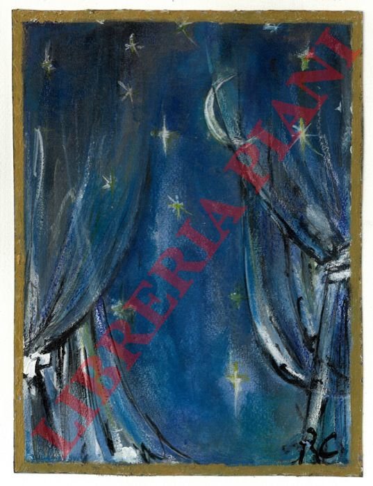 Tre dipinti su cartoncini rigidi di cm. 29 x 22 cad. cornici in oro ed incollati su fogli bianchi 43 x 34. Anni '70 circa. I tre :
