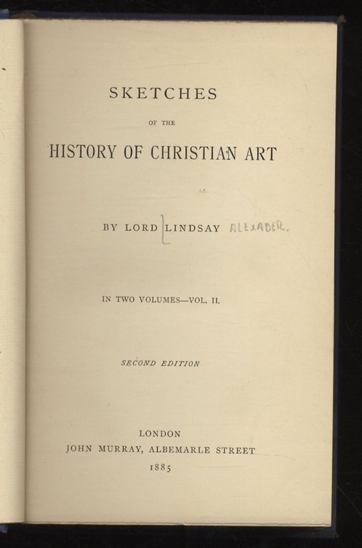 Sketches of the History of Christian Art. By Lord Lindsay. In two volumes. Vol. II. Second edition.