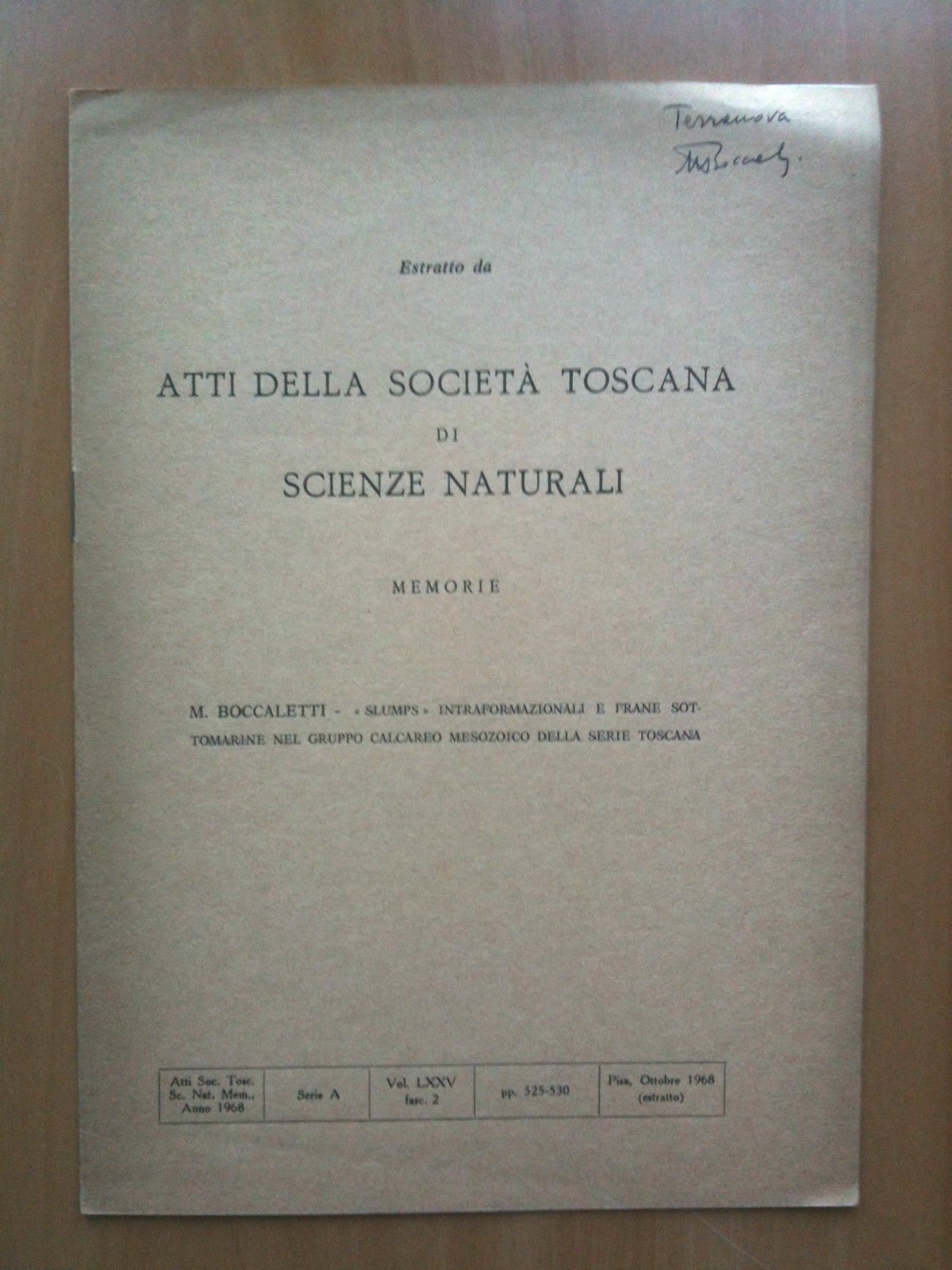 "SLUMPS" INTRAFORMAZIONALI E FRANE SOTTOMARINE NEL GRUPPO CALCAREO MESOZOICO DELLA SERIE TOSCANA M. BoccalettiEstratto da Atti della Società Toscana di Scienze Naturali - memorieAtti Soc. Tosc. Sc. Nat., mem., Anno 1968 Serie A Vol. LXXV fasc. 2 pp. 525-530 Pisa, Ottobre 1968 (estratto)8 pagine formato 17x24.5(26 g)E3343