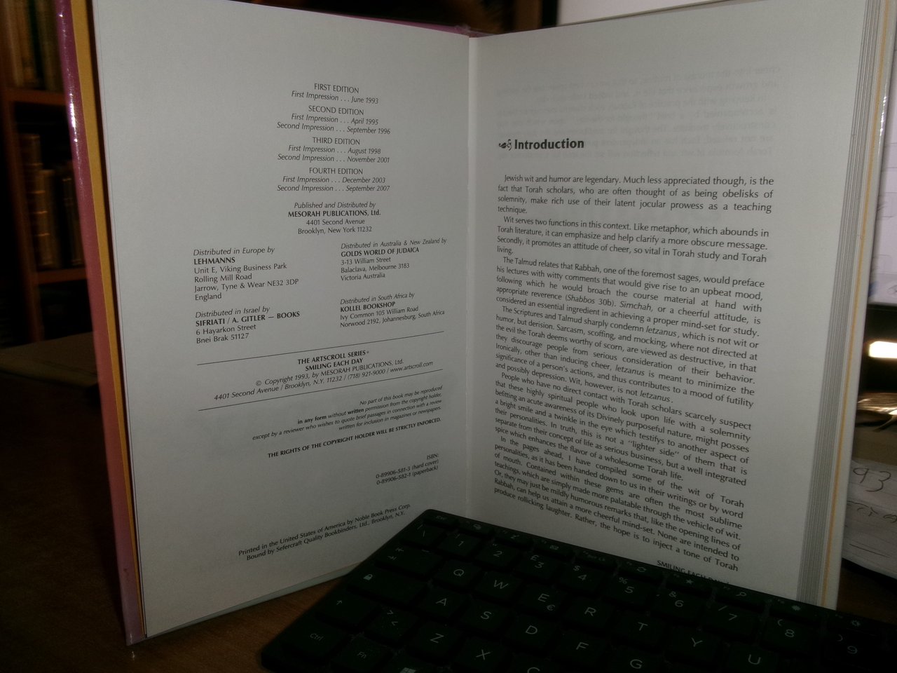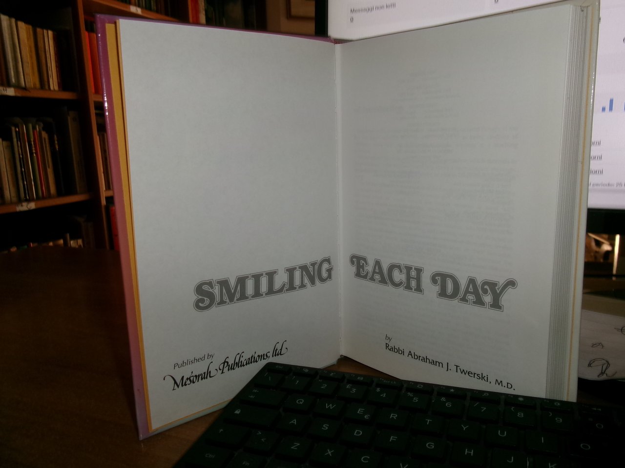Rabbi Abraham J. Twerski. Brooklyn, Mesorha, 1993. Smiling Each Day. In-8°. cartonato edit. vi, 357 pp. Come nuovo con testo in inglese. Uff. a sinistra III - 2