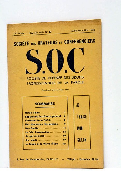 SOCIÉTÉ DES orateurs et conférenciers. Société de défense des droits professionnels de la parole.