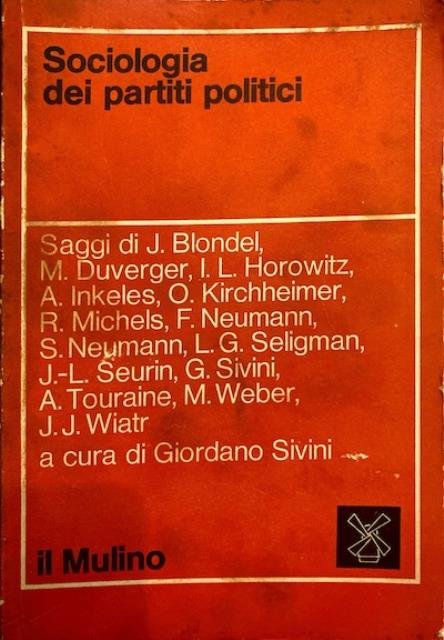 320 p. ; 21 x 15 cm. Problemi e prospettive, Serie di sociologia. Risulta dai saggi contenuti in questo volume che riguardano i partiti politici nelle democrazie occidentali una storia tipologica che va dai partiti di rappresentanza individuale a quelli di integrazione, che si conclude con i partiti «piglia tutto». Nei testi viene analizzato il partito come una variabile dipendente piuttosto che indipendente nelle sue relazioni con il sistema politico e con quello sociale. Di conseguenza viene contestata la specificità delle funzioni che l'analisi classica attribuiva al partito rispetto ad altri soggetti del sistema politico, in primo luogo ai gruppi di interesse. In questo modo entra in crisi l'approccio riduzionistico che spesso confonde sistema politico e sistema partitico, e viene posta una seria ipoteca sulla stessa utilità di ragionare in termini di sistema. Contiene saggi di J. Blondel, M. Duverger, I. L. Horowitz, A. Inkeles, O. Kirchheimer, R. Michels, F. Neumann, S. Neumann, L. G. Seligman, J.- L. Seurin, G. Sivini, A. Touraine, M. Weber, J. J. Wiatr. Brossura editoriale, coperta in cartoncino flessibile colorato. Segni del tempo alla coperta, al dorso e ai profili. Pagine interne leggermente ingiallite, per il resto esemplare da studio integro. Codice libreria 9874.