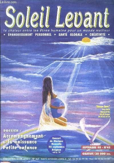 Soleil levant, la chaleur entre les etres humains N°45, septembre 1998 - dossier: accompagnement a la naissance petite enfance, l'avenir avant la naissance, jardin interieur, enfant pedagogie, dojo du centre, calendrier stage, therapies cours, stages .