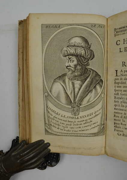 Cm. 17, pp. (8) 404. Con moltissime tavole f.t. con i ritratti incisi in rame. Legatura settecentesca in cart. alla rustica con titoli ms. al dorso. Un paio di quaderni fortemente bruniti verso la fine del volume, peraltro buona conservazione. Si tratta della prima edizione di quest'opera storica così definita nella biografia: "Son principal ouvrage, intitulé Sommaire royal de l'histoire de France (Paris, 1676, in-12), plusieurs fois réimprimé, comprend la traduction du manuel d'histoire de P. Berthauld, connu sous le nom de Florus Franciscus et pendant longtemps en usage dans les collèges de cette époque, auquel le traducteur a ajouté une continuation de vingt années".