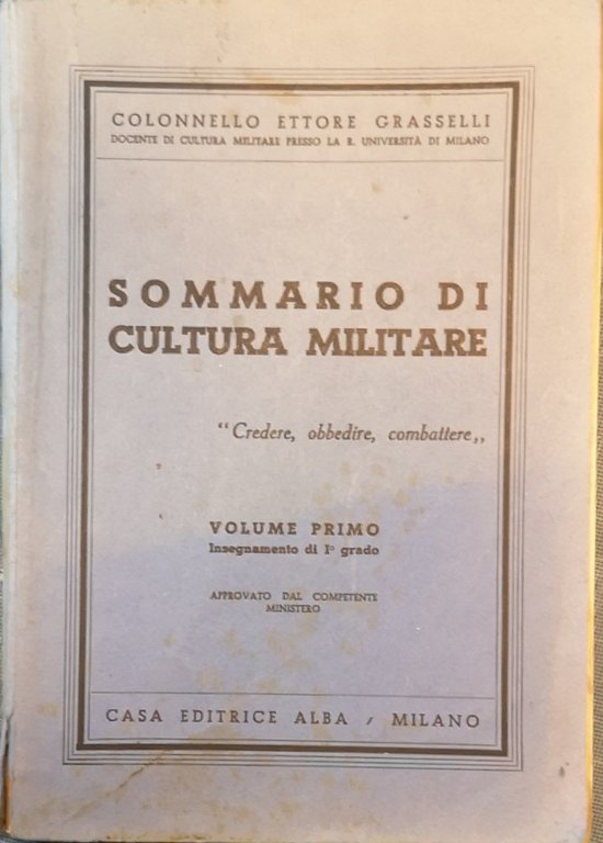 Sommario di cultura militare. Insegnamento di 1. grado : secondo i programmi in vigore del Ministero dell'Educazione Nazionale 7 maggio 1936-XIV