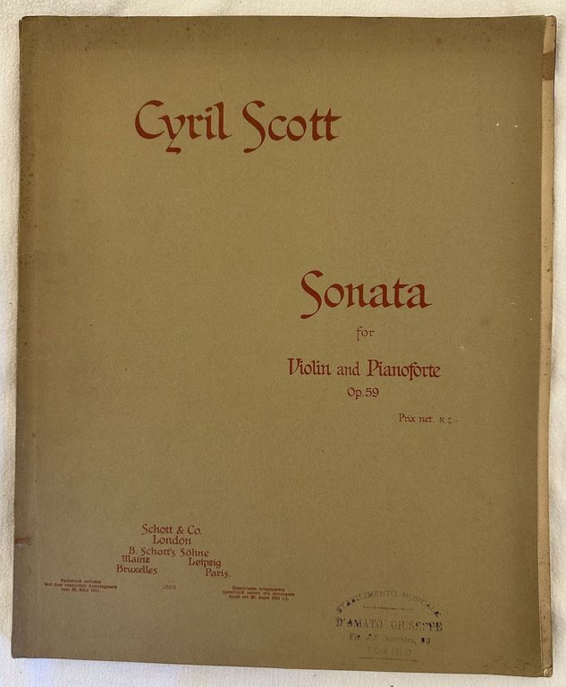 SONATA FOR VIOLIN AND PIANOFORTE OP. 59