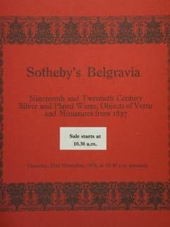 Sotheby's Belgravia. Nineteenth and Twentieth Century Silver and Plated Wares, Objects of Vertu and Miniatures from 1837. London. Thursday, 23 rd November, 1978.