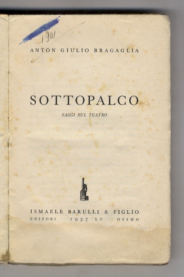 Osimo, Ismaele Barulli & Figlio, 1937, in-8, br. editoriale, pp. 320, (3). Blanda gora che interessa il margine bianco inferiore di gran parte delle pagine. Timbro d'appartenenza (Alfredo Iorio) al frontespizio. Prima edizione, intonso.