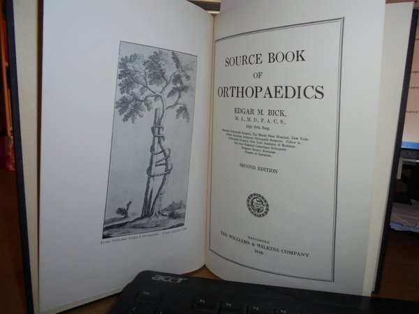 EDGAR M. BICK. Baltimore, The Williams & Wilkins Company, 1948. SOURCE BOOK of ORTHOPAEDICS. In-8°, tela edit. con titolo in oro al dorso. xii, 540 pp. con alcune illustrazioni e tavole nel testo. In ottimo stato di conservazione. Uff. C - IV - 4