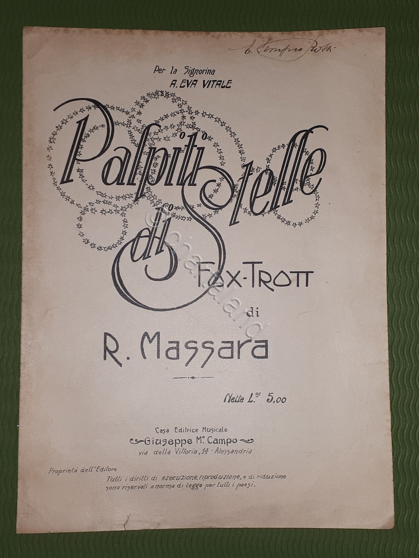 Spartito - Palpiti di Stelle - Fox - Trot di R. Massara - 1930 ca.