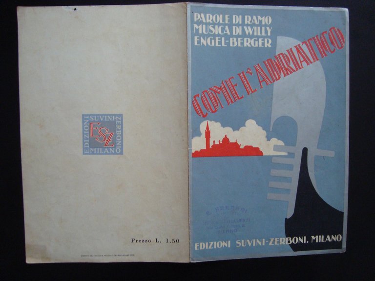 Spartito Come l'Adriatico fox trot Luciano Ramo Ed Suvini Zerboni Milano 1930
