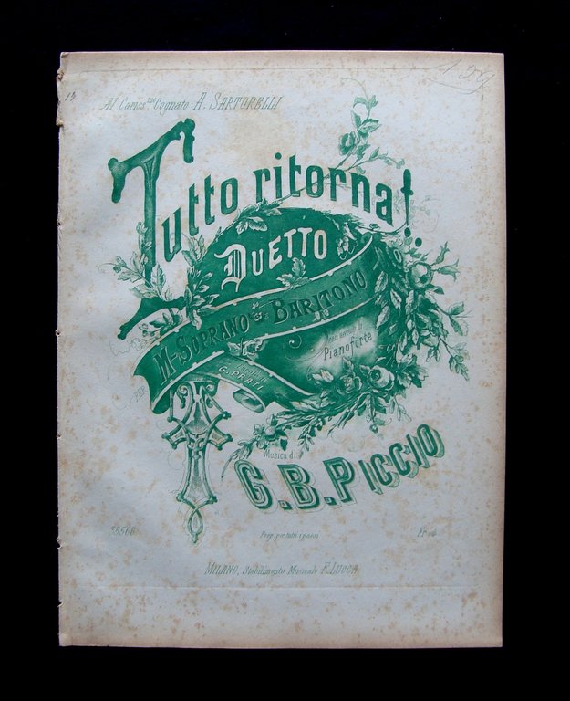 Spartito G.B.Piccio Tutto Ritorna Soprano Baritono Pianoforte Musica