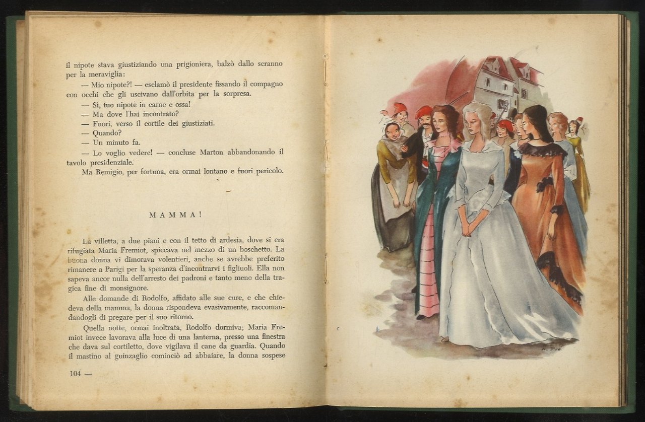 Milano, Editrice “La Sorgente”, 1953, in-8, legatura di poco successiva in puiena tela verde, pp. 154. Con illustrazioni a colori su tavole f.t. di F. Pizzi. Qualche marginale fioritura.