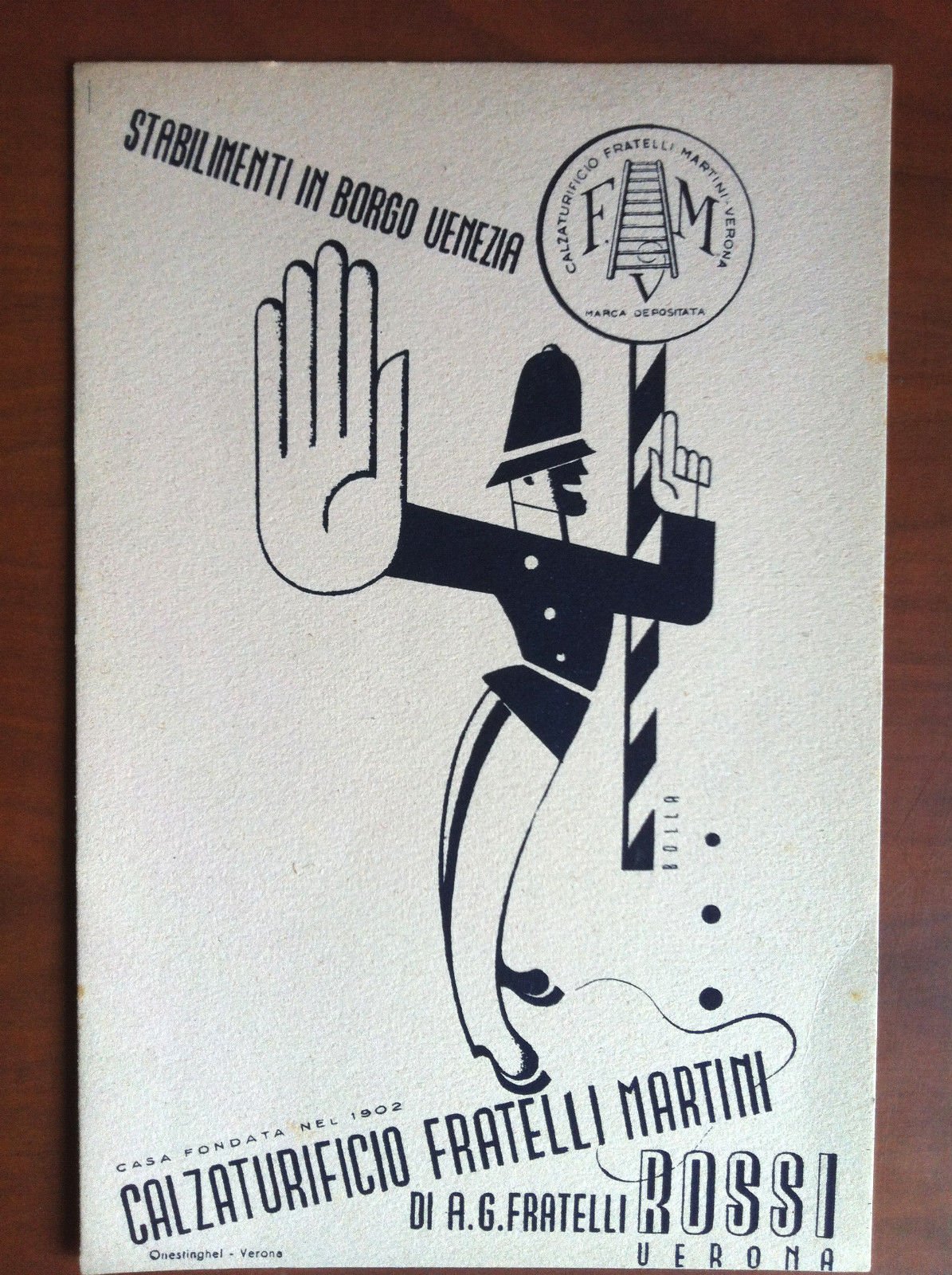 CALZATURIFICIO FRATELLI MARTINI DI A. G. FRATELLI ROSSI VERONAStabilimenti in Borgo Venezia Casa fondata nel 1902Illustrazione di Bolla anni '30 su Carta AssorbenteFormato 14x20,5 cm In ottime condizioni (5 g) E14188