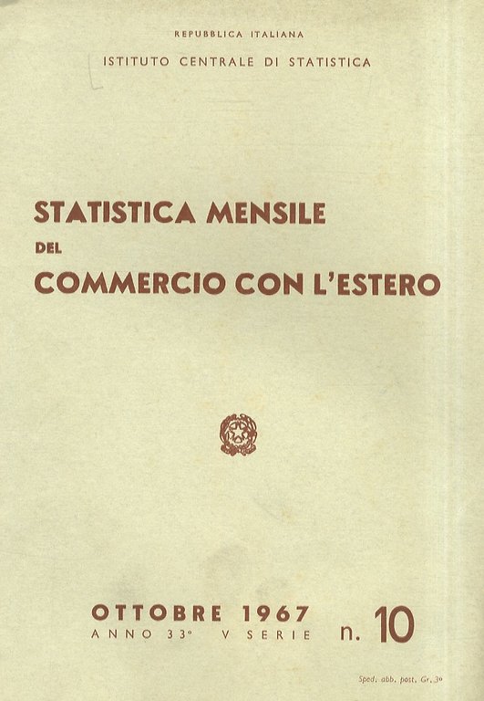 Statistica mensile del commercio con l'estero. Anno 33, V, serie n. 10. Ottobre 1967.