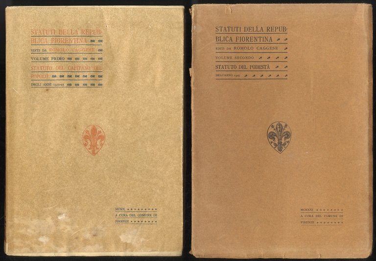 STATUTI della Repubblica fiorentina. Editi a cura del Comune di Firenze da Romolo Caggese. I: Statuto del Capitano del popolo degli anni 1322-25 [ - II: Statuto del Podestà dell'anno 1325).
