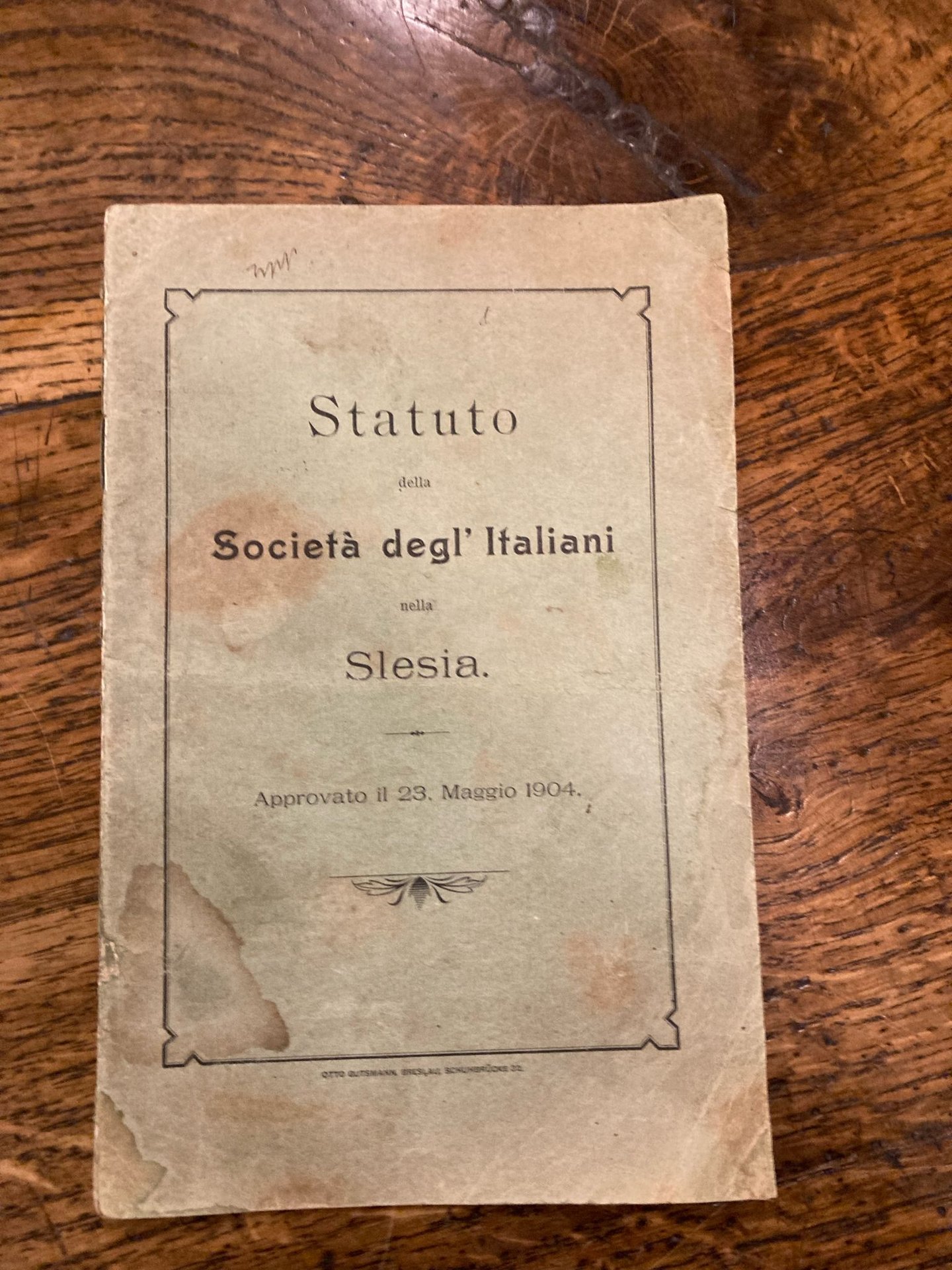 Statuto della Società degl' Italiani in Slesia. Approvato il 23 marzo 1904