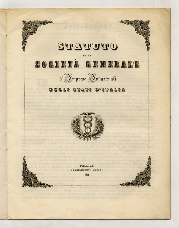 STATUTO della Società Generale d'Imprese Industriali negli Stati d'Italia.